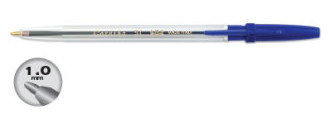 Popularny długopis z wymiennym wkładem. Przeżroczysta obudowa umożliwia kontrolę zużycia tuszu. Grubość linii 1mm, długość pisania około 2000m. Jednostka sprzedaży 1szt.