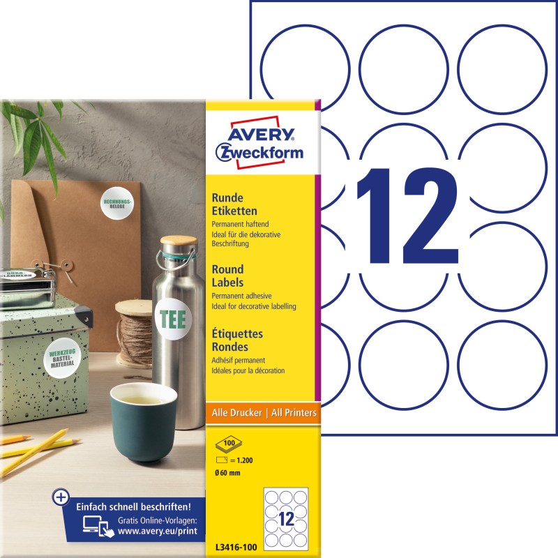 Etykieta uniwersalna ILK ¤ 60mm (A4/100ark) L3416-100 Avery Zweckform