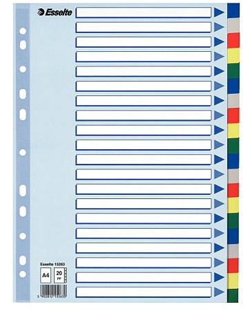 Przekładki A4 20 ESSELTE 15263 plastikowe