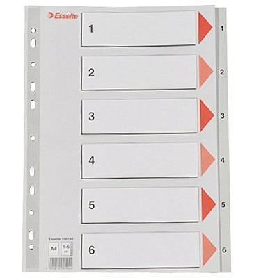 Przekładki A4 1- 6 Esselte 100104 f/num plastikowe szare
