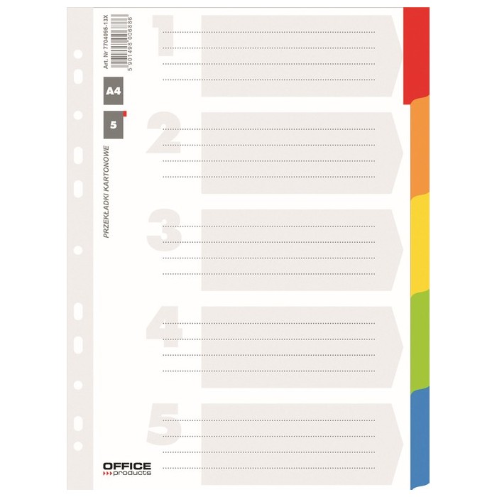 Przekładki A4 5 OFFICE 21070511-99 karton kolor laminowane indeksy