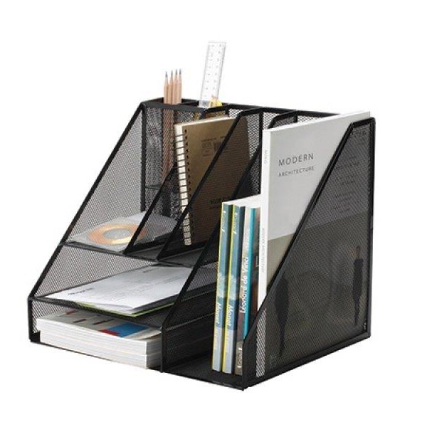 Przybornik na biurko druciany KF18473 6 komór KF18473 czarny