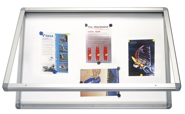 Gablota wykonana z profilu aluminiowego, do używania wewnątrz budynku. Drzwiczki z pleksi zamykane na zamek imbusowy. Tył gabloty wzmocniony blachą ocynkowaną. W komplecie elementy mocujące. Powierzchnia magnetyczna, 90 x 120 cm.