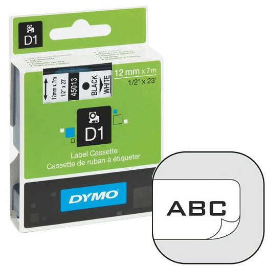 Taśma DYMO D1 12mm x 7m 45013 czarno-biała