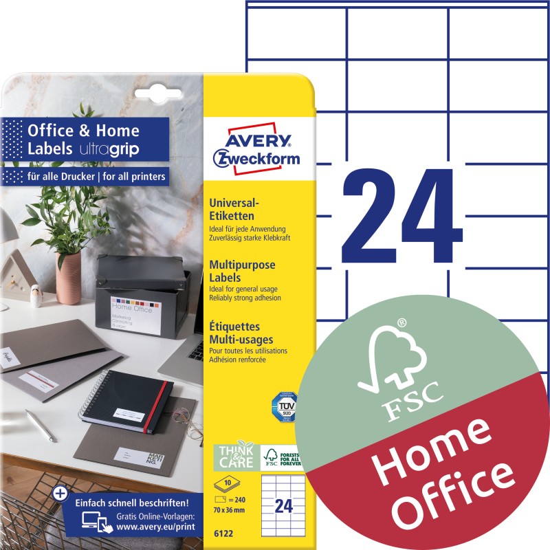 Trwałe etykiety uniwersalne Avery Zweckform, 70 x 36mm; A4; 10 ark./op.; białe