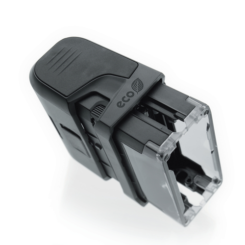 Dwa specjalne uchwyty umożliwiają wymianę wkładki tuszującej bez dotykania wkładki z tuszem, co pozwala