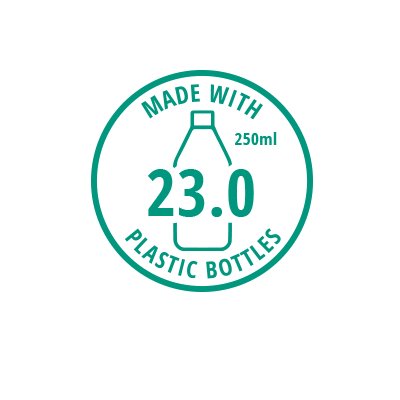 - Wykonana z 23,0 plastikowych butelek o pojemności 250 ml