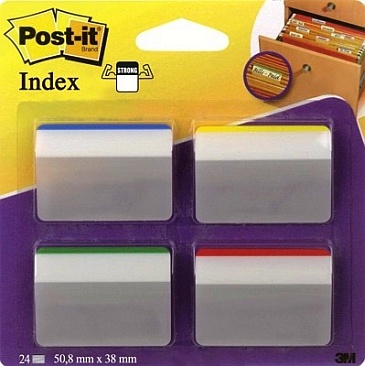 Samoprzylepne zakładki indeksujące Post-it? do archiwizacji. Specjalnie wygięte nadają się do szuflad archiwizacyjnych. Rozmiar 50,8 x 38 mm.