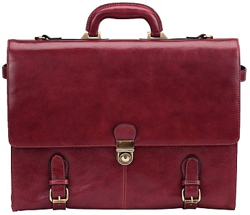 Teczka skórzana z czterema przegródkami i dwiema regulowanymi sprzączkami, pozwalającymi znacznie zwiększyć objętość teczki.
