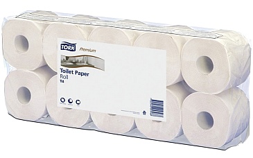 Biały papier toaletowy w konwencjonalnych rolkach.