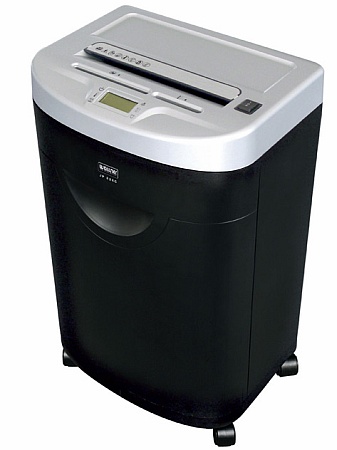- Funkcje dodatkowe: automatyczny Start/Stop, funkcja cofania, zabezpieczenie przed przegrzaniem, optyczny wskaźnik napełnienia / wyjętego kosza, dotykowy panel bezpieczeństwa wstrzymujący prace urządzenia, wyświetlacz LCD - wskazuje włączoną funkcję niszczarki, osobna szczelina do niszczenia płyt CD, wyjmowany pojemnik na ścinki, obudowa na kółkach.