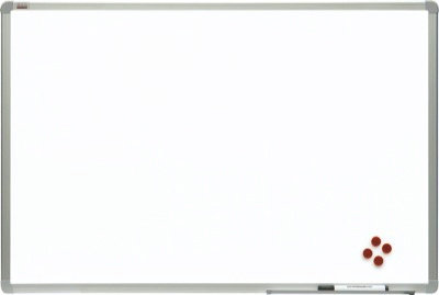 Tablica biała suchościeralna o powierzchni magnetycznej ceramicznej. Rama wykonana jest z profilu aluminiowego w kolorze srebrnym, wykończona eleganckimi, popielatymi narożnikami. Tył tablicy wzmocniono blachą ocynkowaną. Dodatkowo produkt posiada wygodną półkę o długości 30 cm, która zmieści wszelkiego rodzaju przybory niezbędne podczas prezentacji. Bardzo łatwa i szybka w montażu. Istnieje możliwość zawieszenia tablicy zarówno w pionie, jak i w poziomie.