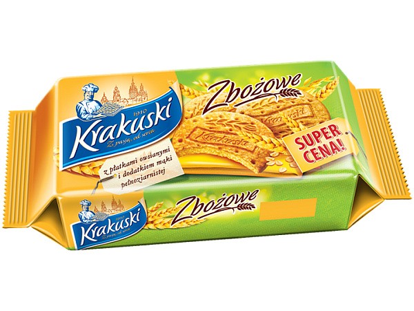 Krakuski Zbożowe to połączenie prostej, tradycyjnej receptury oraz bogatych w błonnik składników takich jak mąka pełnoziarnista oraz płatki owsiane. Krakuski Zbożowe to nie tylko dobrodziejstwo natury i tradycji ale przede wszystkim przyjemność wspaniałego smaku!