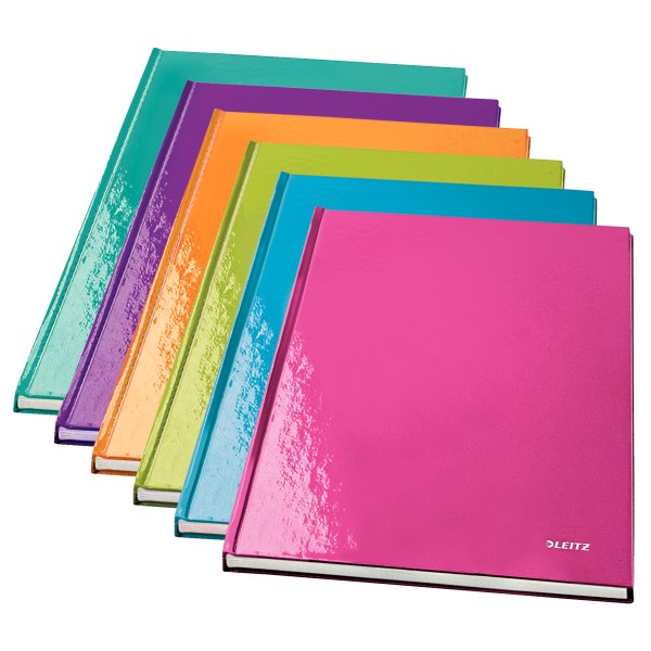 Zeszyt w przykuwających wzrok fluorescencyjnych kolorach. Błyszcząca, miła w dotyku laminowana powierzchnia nadaje wysokiej jakości wygląd. Perfekcyjnie pasuje do innych produktów z linii Leitz WOW.
