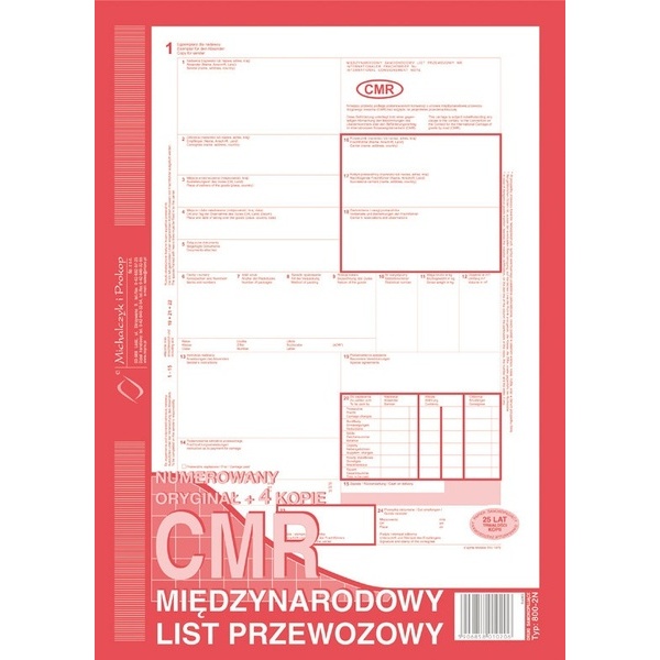 CMR Międzynarodowy list przewozowy A4 1+4 MP 800-2N