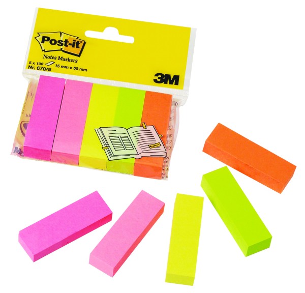 Zakładki indeksujące 3M 670/5 15x50 (5x100) żółty/różowy/zielony/pomar/j.róż