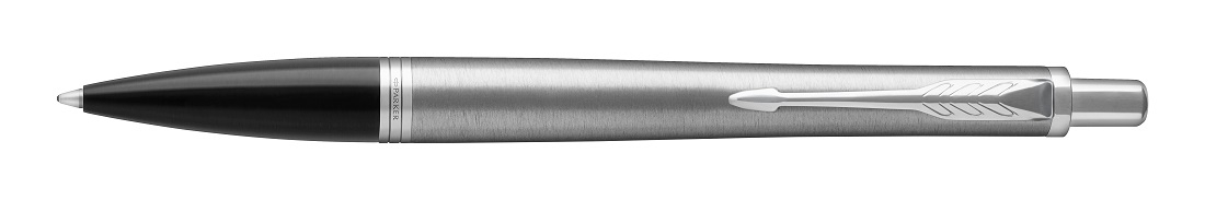 Korpus długopisu Parker Urban Core Metro Metallic CT wykonano ze stali o charakterystycznej, szczotkowanej fakturze. Sekcja przednia wykonana z połyskującego, czarnego materiału polimerowego. Całość wieńczą pierścienie ze stali nierdzewnej z wykończeniami platerowanymi chromem.