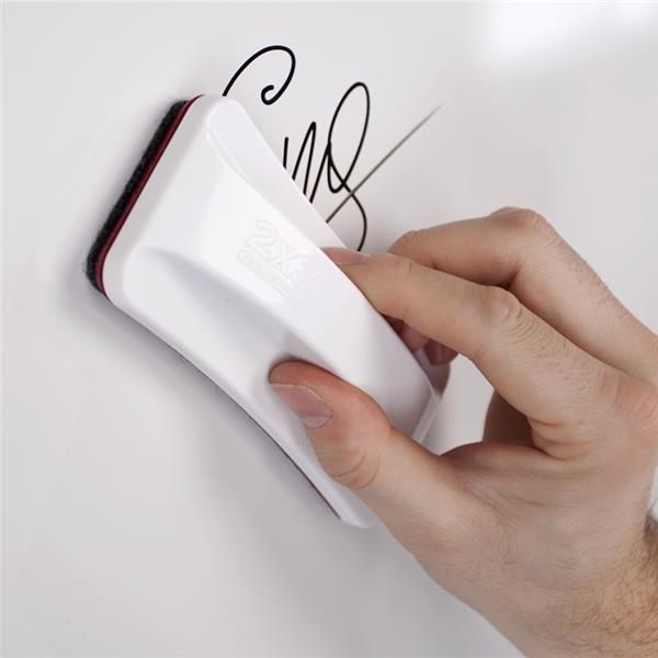 Wygodny w użytkowaniu czyścik z wymiennym filcem (na rzep). Wbudowany magnes pozwala przytwierdzić czyścik w dowolnym miejscu tablicy.