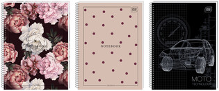 Format: A5. Liczba kartek: 100. Zadruk w kratkę. Ostre rogi. Pojedyncza spirala wkręcana. Otwory do segregatora. Perforacja wzdłuż grzbietu, ułatwiająca wyrywanie kartek. Spirala po długim boku.