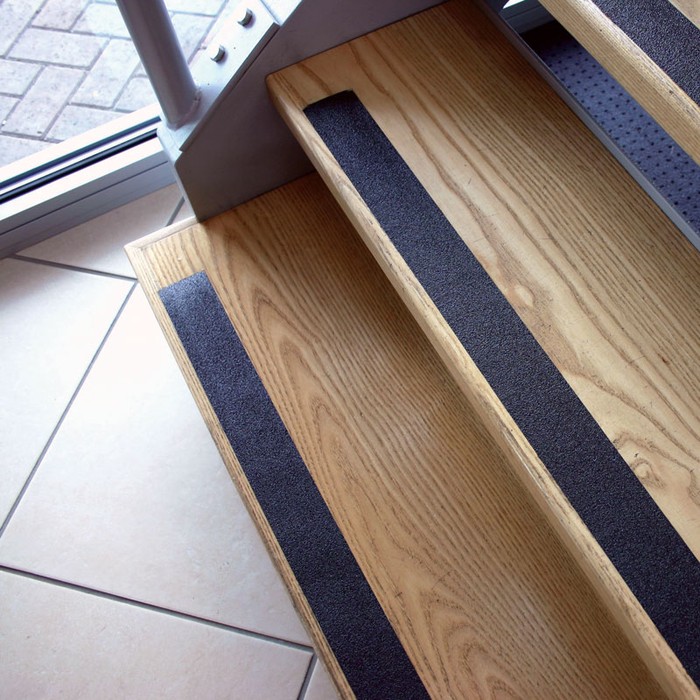 Taśmy antypoślizgowe o powierzchni ziarnistej - odporne na ścieranie, z podłożem samoprzylepnym. Uniwersalność zastosowań na powierzchniach podłogowych i schodach. Wysoka odporność i łatwość montażu. Wersja ostrzegawcza w kolorze żółtym/czarnym doskonale widoczna przy słabym oświetleniu. Właściwości antypoślizgowe zgodne z normą EN 13552, kat. R13.