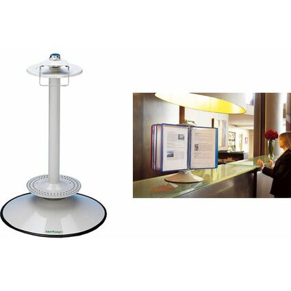 Nabiurkowy obrotowy system prezentacyjny (360°) z systemem blokującym. System sprzedawany bez paneli prezentacyjnych. Możliwość rozszerzenia od 40 do 50 paneli. Przystosowany do paneli formatu A4. Miks kolorów.