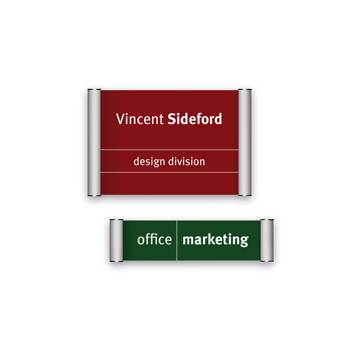 Tabliczka informacyjna przydrzwiowa przeznaczona do użytku zewnętrznego lub wewnętrznego. Składa się z dwóch aluminiowych profili o szerokości 25 mm, wykończone eleganckimi, grafitowymi zaślepkami. Rama dostępna w kolorze srebrnym anodowanym. Tabliczka posiada wbudowany system zatrzaskowy OWZ, zapewniający szybką i łatwą wymianę informacji. Reklamę zabezpieczono dodatkowo elastyczną folią antyrefleksyjną z filtrem UV o grubości 0,5 mm. Tylną ścianę wykonano ze specjalnego, trwałego materiału, odpornego na pęknięcia. Istnieje możliwość zawieszenia tabliczki zarówno w pionie, jak i w poziomie - w zależności od potrzeb.