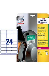 ultra wytrzymałe Avery Zweckform L7912-10 w rozmiarze 63,5 x 33,9 mm są niezwykle wytrzymałe i nadają się do trwałej aplikacji zarówno wewnątrz, jak i na zewnątrz.
