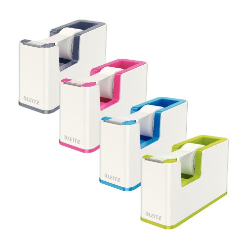 Przykuwający wzrok, wysokiej jakości stylowy podajnik taśmy klejącej, w unikalnym zestawieniu 2 kolorów, wykończony z połyskiem. Wygodna obsługa jedną ręką. Idealnie pasuje do pozostałych produktów z kolekcji Leitz WOW. Nowoczesne wzornictwo sprawia, że świetnie prezentuje się zarówno w domu, jak i w biurze.