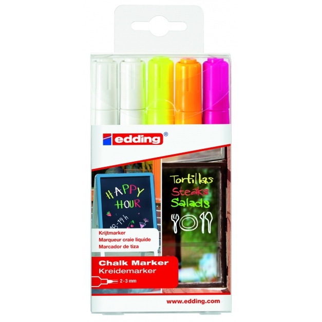 Marker kredowy do wykonywania zmywalnych dekoracji i napisów na nieporowatych powierzchniach, np. szybach, ciemnych tablicach, szkle i lustrach. Matowa, płynna kreda o neutralnym zapachu na bazie wody może być starta z praktycznie każdej nieporowatej powierzchni przy pomocy wilgotnej szmatki.