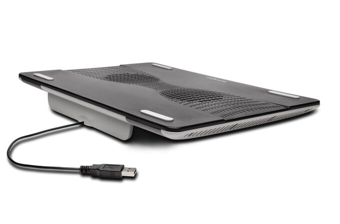 Najlepszym sposobem na zapewnienie maksymalnej wydajności Twojego laptopa jest zastosowanie podstawki chłodzącej firmy Kensington. Podstawka ta, wyposażona w dwa wentylatory zasilane przez kabel USB, unosi komputer o przekątnej do 15,6" nad powierzchnię biurka w celu poprawy cyrkulacji powietrza, ograniczając w ten sposób kumulację ciepła, co poprawia wydajność akumulatora i wydłuża okres jego eksploatacji. Podstawka ma także wysuwaną stopkę i cztery gumowe nakładki stabilizacyjne, które utrzymują komputer w stabilnej pozycji.