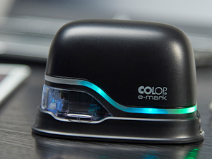E-mark jest pierwszym na świecie mobilnym, elektronicznym, wielokolorowym, zasilanym przez baterię urządzeniem znakującym od firmy COLOP. To elektroniczne urządzenie znakujące, które oferuje wydruki w pełnym kolorze w niemal nieograniczonych wariantach. Imponujące wydruki pieczęci z logotypami i zdjęciami. Datownik, numerator, generator kodów QR i kreskowych w jednym urządzeniu. A to wszystko tworzone w sposób prosty, intuicyjny. E-mark pozwala na oznaczanie, stemplowanie, automatyczne numerowanie. Nadruki mogą być wykonywane na każdej chłonnej powierzchni, takiej jak: dokumenty, koperty, książki, torebki papierowe, taśmy tekstylne, kartony i wiele, wiele innych. E-mark oferuje niezliczoną ilość możliwości - prawdziwe narzędzie marketingowe, biurowe i przemysłowe.