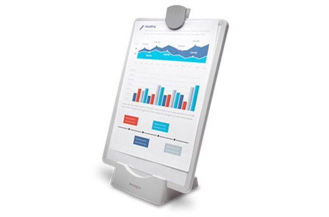 Wielofunkcyjna podstawka na dokumenty OfficeAssist? zastępuje wielu akcesoriów biurowych, zajmując miejsce tylko jednego. Oprócz tego, że pełni funkcję solidnego uchwytu na dokumenty, może być wykorzystana także jako suchościeralna tablica magnetyczna, podkładka do pisania z klipsem, podpórka pod książkę, podstawka na telefon komórkowy z wbudowanym systemem do porządkowania kabli podczas ładowania oraz podstawka na długopis. Wielofunkcyjna, ergonomiczna podstawka OfficeAssist? to idealny pomocnik na biurku ? sprzyja przyjmowaniu prawidłowej postawy podczas pracy, utrzyma do 50 kartek w orientacji poziomej lub pionowej, jest kompatybilna z systemem VESA?.