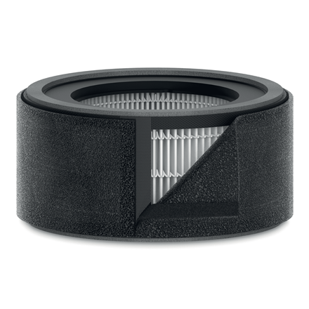 - Wstępny filtr węglowy wychwytuje zapachy i niektóre gazy oraz zapewnia pierwszy poziom ochrony przed kurzem i sierścią zwierząt domowych
