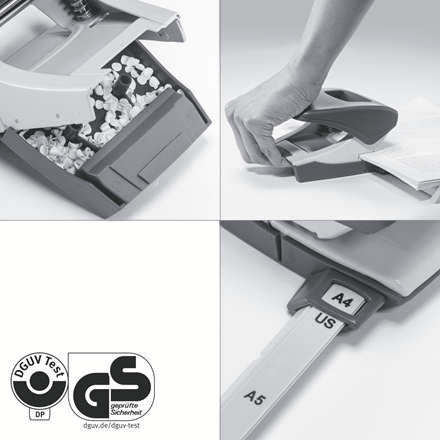 - Wyraźne rozgraniczenia formatu i mocna prowadnica zapewniają doskonałe wyrównanie papieru