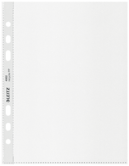 Przyciągające wzrok, najwyższej jakości koszulki na dokumenty A5 przeznaczone są do porządkowania dokumentów w biurze i w domu oraz ich ochrony podczas przenoszenia. Koszulki posiadają perforowany pasek, który służy do wpinania do segregatorów z mechanizmem dźwigniowym oraz ringowych. Wykonane z plastiku w 90% pochodzącego z recyklingu (przedkonsumpcyjnego), audytowane zewnętrznie i certyfikowane przez UL, neutralne dla klimatu dzięki redukcji emisji i kompensacji CO2. W 100% nadają się do ponownego przetworzenia. Te wytrzymałe, praktyczne koszulki z matowej folii groszkowej zapewniają użytkowanie przez długie lata i doskonale pasują do innych produktów z kolekcji Leitz Recycle. Kolekcja nowoczesnych, przyjaznych dla środowiska artykułów biurowych świetnie zaprezentuje się w domu i w biurze. Dzięki przyjaznej dla środowiska linii produktów Recycle oferowanej przez firmę Leitz masz wpływ na poprawę zarówno środowiska biurowego, jak i całej naszej planety.