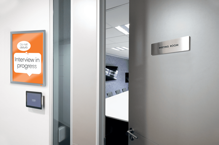 - Mocowana do ściany, stylowa, niskoprofilowa ramka zatrzaskowa ze ściętymi, bezspoinowymi narożnikami i prawdziwie innowacyjnym mechanizmem do wymiany prezentowanych informacji