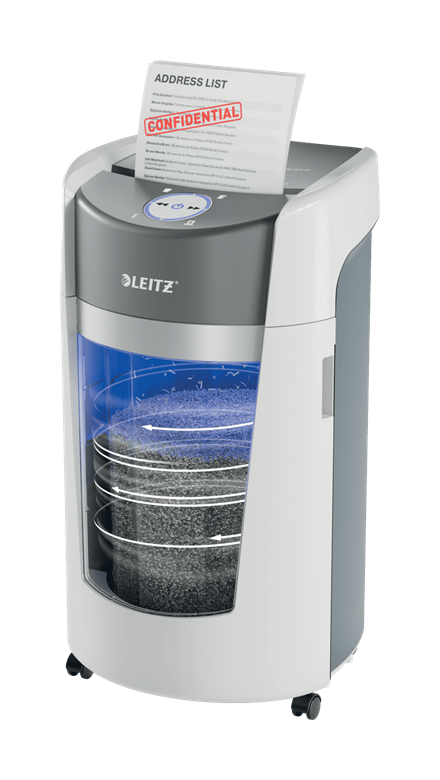 Leitz IQ OptiMax to innowacyjna i stylowa niszczarka, która zapewnia wysoki poziom bezpieczeństwa niszczonych dokumentów oraz daje pewność, że cały proces przebiegnie bezproblemowo. Oferuje poziom bezpieczeństwa DIN 5 - niszczy do 10 kartek A4, tnąc je na mikrościnki. Niszczarka IQ OptiMax posiada unikalną technologię obrotowego pojemnika (Bin Rotation Technology - BRT), która zwiększa jego pojemność o 33%*. Obrotowy pojemnik na ścinki zapewnia równomierne rozprowadzanie ścinków, zapobiegając tworzeniu się piramidy, co pozwala zmieścić w nim dodatkowych 140 kartek A4, zanim będzie wymagał opróżnienia. Technologia obrotowego pojemnika eliminuję konieczność wyciągania lub potrząsania pojemnikiem; wskaźnik ?pojemnik pełny? aktywuje się tylko wtedy, gdy pojemnik osiągnie 100% wypełnienia. Duży, 35-litrowy pojemnik na ścinki zmieści do 550 pociętych kartek A4 - podczas pracy podświetla się na niebiesko, zapewniając lepszą widoczność procesu niszczenia. Intuicyjny obrotowy wyświetlacz LED wyświetla na czerwono komunikaty ostrzegawcze, np. o zapełnienia pojemnika czy otwartych drzwiczkach. Niszczarka Leitz IQ OptiMax to uniwersalne urządzenie, które sprawdzi się w każdym środowisku pracy - pracuje bardzo cicho, jest niezwykle wytrzymała i posiada elegancki wygląd. Może pracować nieprzerwanie przez 120 minut. Kolor biały. *Testom poddany został model Optimax w wersji z obrotowym pojemnikiem oraz bez tej technologii