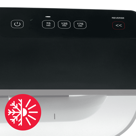 - Po naciśnięciu przycisku, błyskawicznie przełącza ustawienie grubości folii