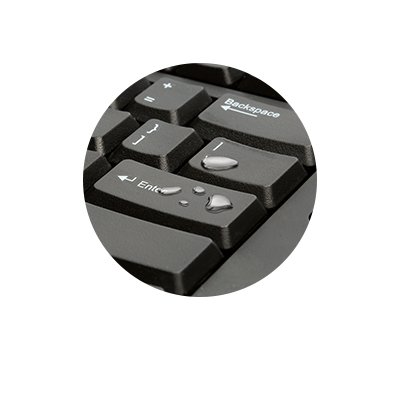 - Uszczelniona membrana zapewnia, że żadne rozlane płyny nie uszkodzą elektroniki. Wystarczy ją wytrzeć.