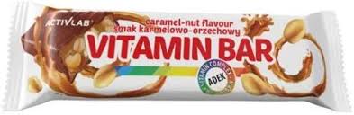 Składniki VITAMIN BAR: Czekolada mleczna 30% [cukier, tłuszcz kakaowy, mleko w proszku odtłuszczone, serwatka w proszku (z mleka), miazga kakaowa, bezwodny tłuszcz mleczny, emulgatory: lecytyny (z soi), polirycynooleinian poliglicerolu; aromat], orzeszki arachidowe 11%, syrop glukozowy, chrupki zbożowe (mąka ryżowa, cukier, sól), cukier, substancje utrzymujące wilgoć: sorbitole, glicerol; tłuszcz roślinny palmowy częściowo utwardzony, mieszanka witaminowo-mineralna 1% [tlenek magnezu, witaminy (kwas L-askorbinowy, amid kwasu nikotynowego, D-alfa-tokoferol, D-pantotenian wapnia, chlorowodorek pirydoksyny, rybofawina, monoazotan tiaminy, octan retinylu, kwas pteroilomonoglutaminowy, filochinon, D-biotyna, cholekalcyferol, cyjanokobalamina), maltodekstryna], serwatka w proszku (z mleka), emulgator: lecytyny (z soi); sól, aromaty, barwnik: karmel amoniakalny.