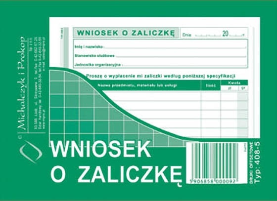 Wniosek o zaliczkę A6 MP 408-5