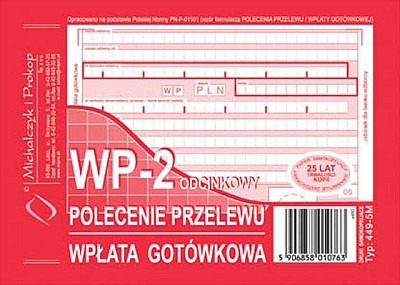 Nazwa: Polecenie przelewu - wpłata gotówkowa (2 odc.).