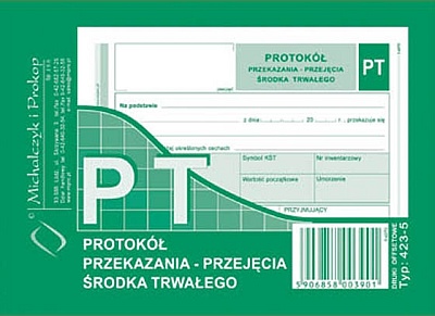 Protokół przekazania środka trwałego A6 PT MP 423-5