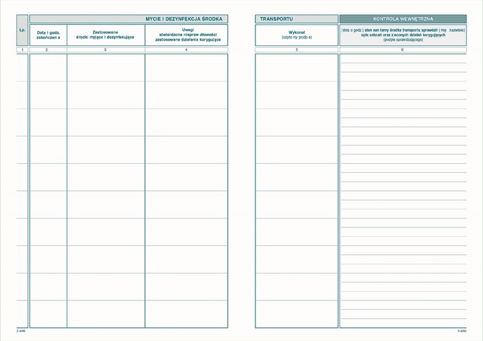 Rejestr mycia i dezynfekcji komory ładunkowej środka transportu MP H91-3