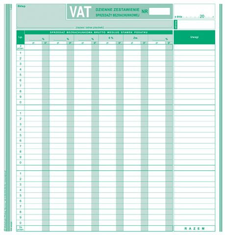 format: 2/3 A4rodzaj papieru: offsetowyzastosowanie: druki kasowe, księgowe i bankoweoprawa: bloczek 40 kartekdruk: dwustronny