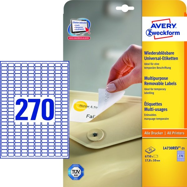 Etykieta Avery 17,8x10 A4 (a"25ark) ILK L4730 Stick&Lift