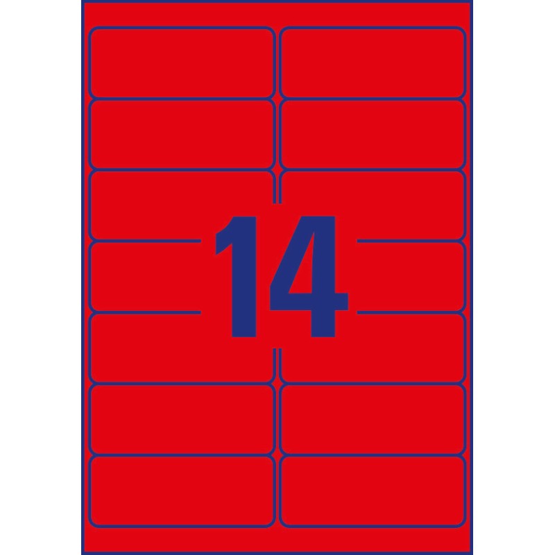 Usuwalne etykiety neonowe Avery Zweckform, A4, 25 ark./op., 99,1 x 38,1 mm, czerwone neonowe