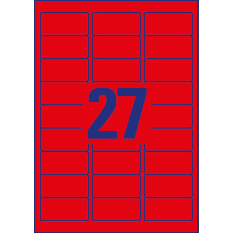 Etykieta neonowa 63,5x29,6mm (A4/25) L6003-25 neon-czerwone Avery Zweckform