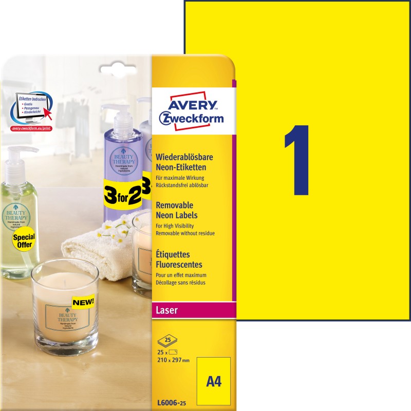 Etykieta uniwersalna ILK 210x297 neonowa żółta (A4/25ark) L6006-25 Usuwalna