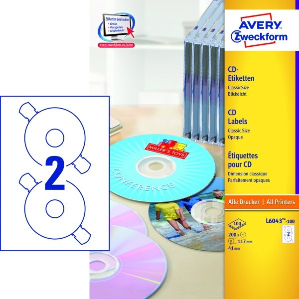 Etykieta Avery na CD A4 (a"100ark) ILK L6043-100
